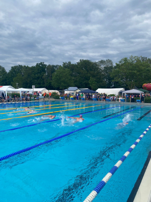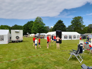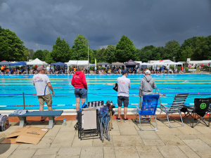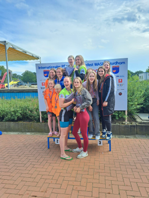Afgelopen pinksterweekend gingen onze zwemmers weer naar het jaarlijkse zwemtoernooi in Nordhorn. Het was een weekend met veel gezelligheid en natuurlijk ook veel stukjes taart. Goede tijden zijn behaald en ook een hoop medailles, waaronder de dames op de estafette 4x100m vrije slag. Maar deze estafette ging niet zonder tegenslag… toen onze topzwemster bij de start een wel hele fanatieke warming-up deed, scheurde ze uit haar badpak. Bij het showen van dit gaatje (letterlijk), scheurde deze nog verder uit!!!! De foto zullen we achter slot en grendel houden. Ondanks deze blamage heeft Elisa gewoon gezwommen en hebben ze alsnog een mooie derde plek weten te bemachtigen. Gedurende het weekend waren er veel energieke mensen die wel hielden van een spelletje, waaronder ook een paar jongens die zomaar de bal in de boom gooide. Daar moest een vader achteraan en de boom inklimmen, natuurlijk hebben we dit fantastische moment ook vastgelegd en is hiervan ook een foto te zien. Naast de energieke mensen waren er ook een aantal vermoeide mensen (zie foto’s). Zondagmiddag was de wedstrijd nog even stil gelegd vanwege de onweer, maar dat mocht de pret niet drukken. En na afloop kwamen de appjes al weer binnen…. allemaal gevonden voorwerpen, iedereen was wel weer wat vergeten. Alles bij elkaar dus een heel leuk weekend en volgend jaar gaan we natuurlijk weer!