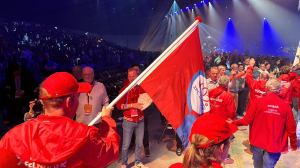 Alle provincies en buitenlandse deelnemers werden één voor één voorgesteld terwijl zij over het podium naar binnen liepen.