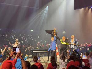 Nadat de vlam was ontstoken kon gezamenlijk de Special Olympische Eed worden afgelegd en had Daphne Schippers nog een woordje voor de sporters.