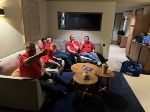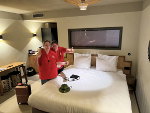 Nadat iedereen een bed had gevonden en zijn koffer had uitgepakt was het tijd om even te zitten en wat te drinken.