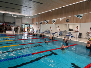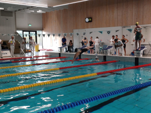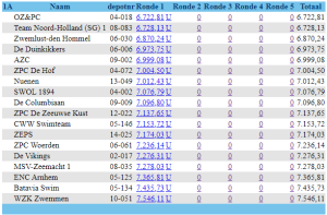 Zondag 6 oktober werd de 1e ronde van de nationale zwemcompetitie gezwommen in Denekamp. Met onze nieuwe clubkleding van X-Spection en Nellen Schoonmaakdiensten (A1) en Hof notarissen (trainers) gingen we in de 1e divisie van start. Na de promotie van vorig jaar is het altijd even spannend, maar na ronde 1 staan we 6e, in totaal 12e (van de 36)!