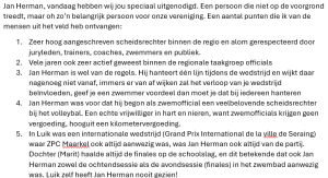 Jan Herman ten Kampe kreeg de onderscheiding tijdens de ALV uitgereikt. Hij is al jarenlang actief als scheidsrechter bij zwemwedstrijden in de regio en wordt breed gewaardeerd door zwemmers, juryleden, trainers en coaches.