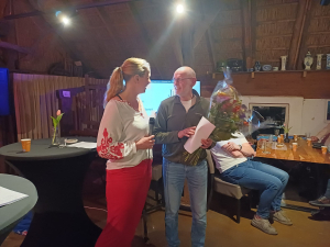 De voorzitter heeft hen een mooie speech en bos bloemen gegeven. En natuurlijk de grootste eer: lid van verdienste van ZPC de Hof!