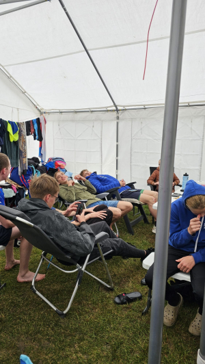 Gelukkig houden alle deelnemers van water, want het weer was bar en boos. We hebben veel regen gezien. Gelukkig kwam de zon ook nog wel een paar keer achter de wolken weg en was het gelijk aangenaam. Onze officials hadden dit jaar een hele mooie taak: Zielrichter. De hele dag op het bankje zitten en de volgorde van aankomst opschrijven. Mede dankzij de organisatie die alles had geregeld, van tenten tot eten, is het weer een mooi weekend geworden!